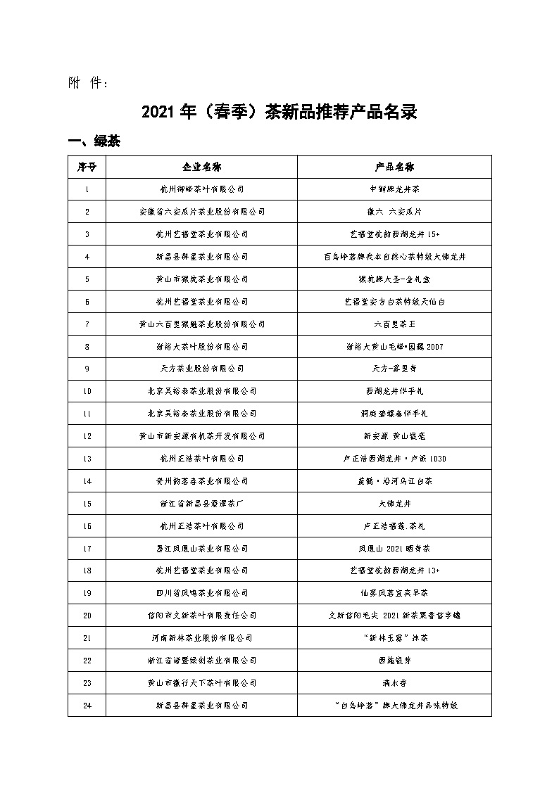 关于公布中国茶业品牌计划——2021年(春季)茶新品推荐活动推荐产品名录的通知
